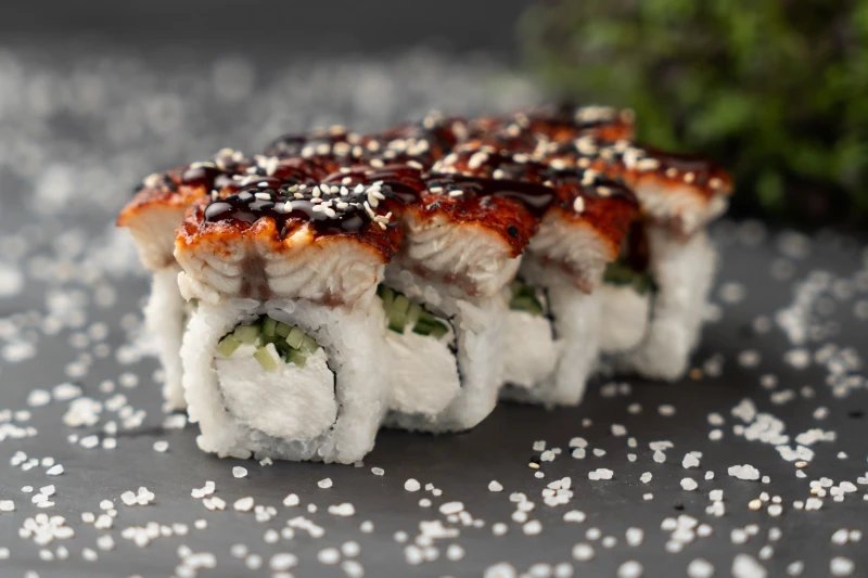 Готовы к путешествию вкуса? Этот ролл проведёт вас по всем оттенкам Азии: от нежного творожного сыра до насыщенного угря в соусе унаги. Хрустящий огурец добавляет свежести, а поджаренный кунжет — лёгкую ореховую ноту. Идеально сбалансированный, сытный и в меру пикантный — выбор тех, кто ценит гармонию простых ингредиентов.